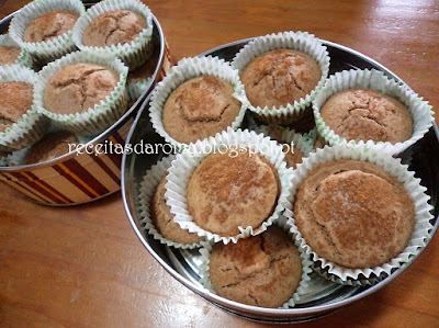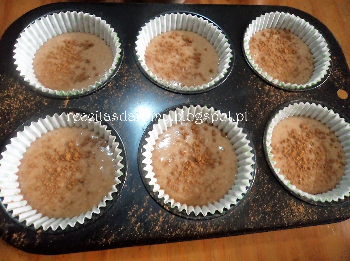 Coloque 24 forminhas de papel frisado em formas de metal e verta a massa do bolo até um terço da sua capacidade. Polvilhe com canela em pó.