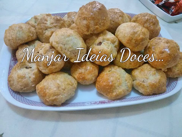 - Retiram-se pequenas porções de massa que se recheiam com chouriço, moldam-se em pequenas bolinhas.