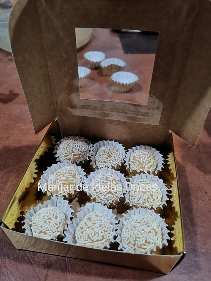 - Depois de frio e com as mãos untadas, molde pequenas bolinhas e envolva em chocolate branco granulado ou côco ralado.