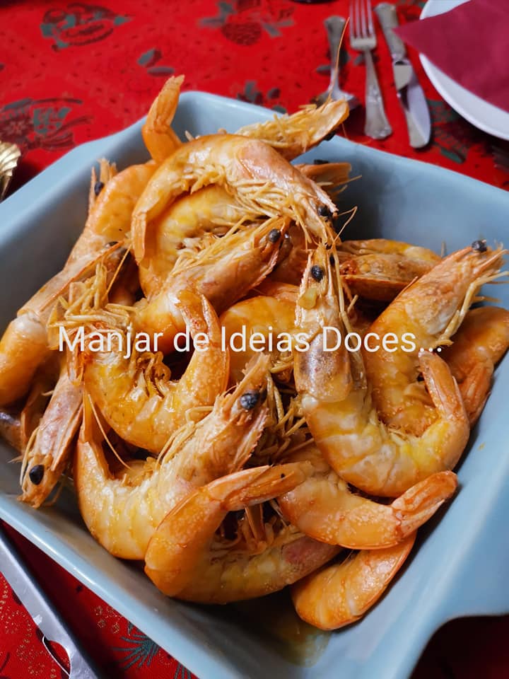 - Num wok antiaderente, aqueça o fio de azeite, junte os alhos bem picadinhos, deixe o azeite tomar o gosto do alho mas sem deixar queimar, junte os camarões e deixe saltear uns 3/4 minutos.