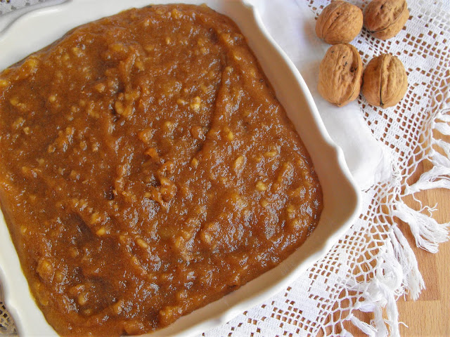 Colocar os ovos num tachinho pequeno e bater muito bem, com uma vara de arames, até estarem completamente misturados. Acrescentar o açúcar e uma pitada de canela e mexer novamente. Levar o tacho a lume brando, mexendo sempre até começar a engrossar. Quando começar a ficar espesso juntar as nozes picadas, retirar do lume envolver muito bem. Retirar de imediato para uma taça ou pequenas taças.