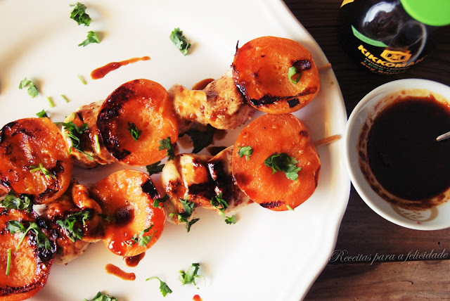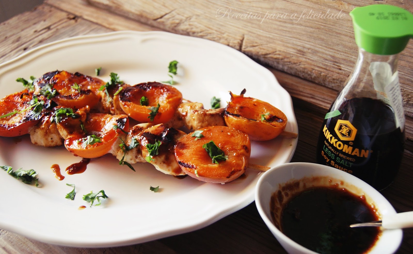 Nos últimos 2 minutos, pincele as espetadas com o molho de mel e soja.