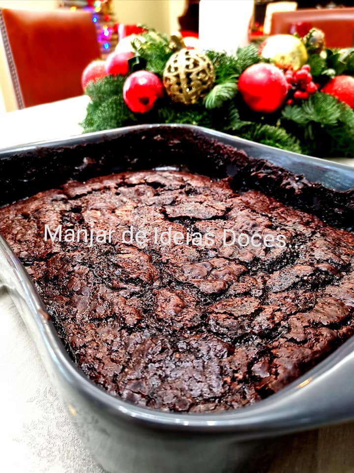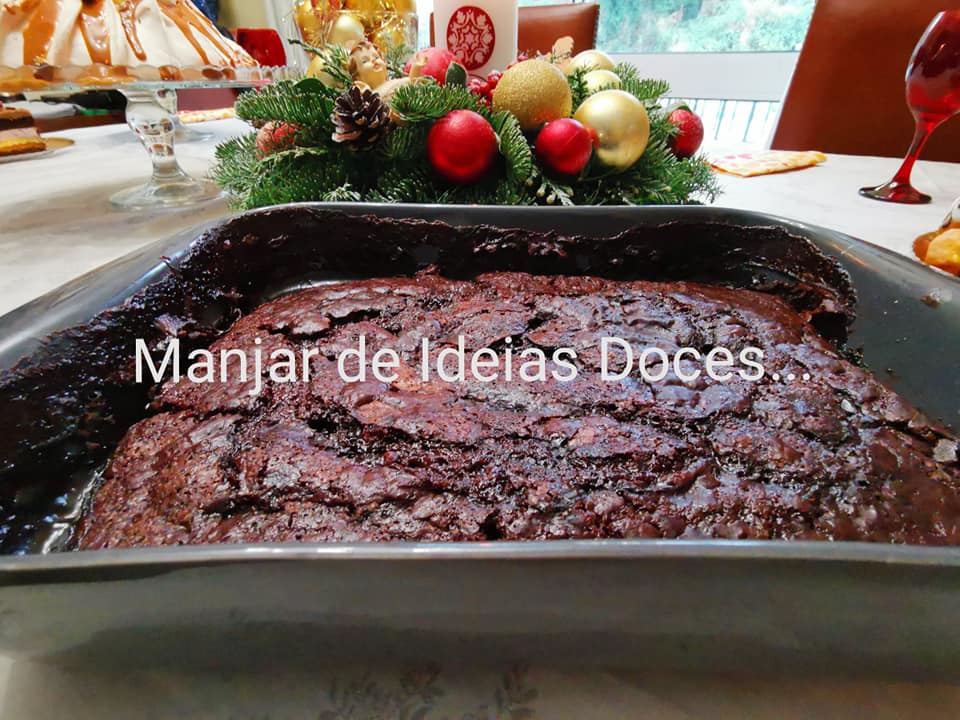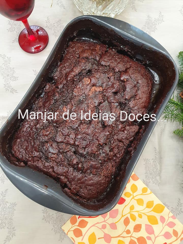 - 1ª camada: Numa taça, misture 1 chávena de açúcar, o sal e a farinha peneirada com o fermento e o cacau, junte a baunilha, o leite e a manteiga derretida, envolva tudo com a batedeira ou com colher de pau para agregar todos os ingredientes. Deite o preparado na forma.