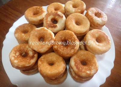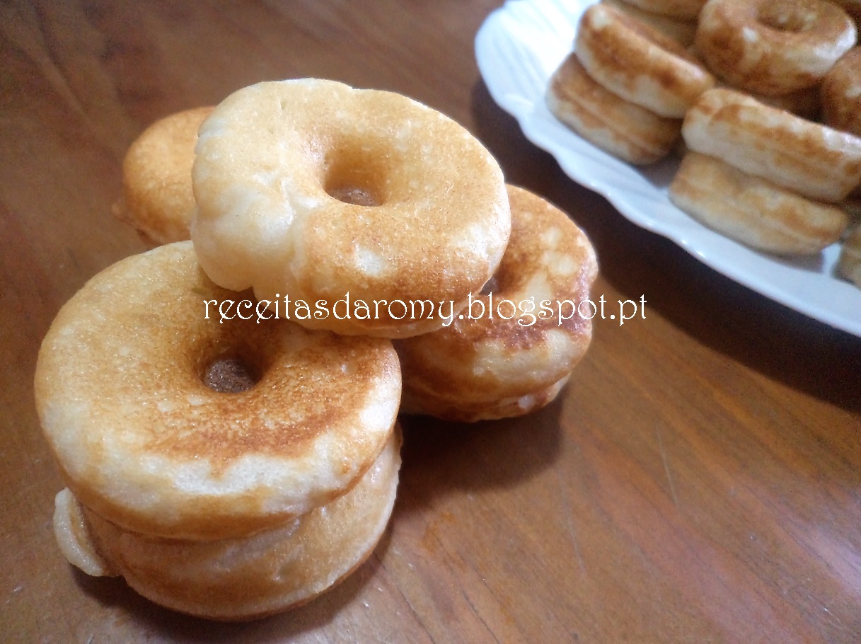Untei os orifícios, da máquina de donuts, com óleo de coco e assei os mini donuts até ficarem dourados.