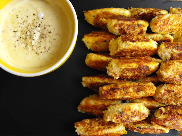 Lá em casa gostamos de couve-flor. Temos usado cada vez com mais frequência em vários pratos, especialmente no arroz de couve-flor. Farta de ver pastelinhos de couve-flor por todo o lado, resolvi experimentar também fazer a minha versão. São um excelente acompanhamento, apesar de não se fazerem em dois tempos como um arroz ou um esparguete. Costumo guardar este tipo de experiências mais para o fim-de-semana, quando tenho mais tempo de cozinhar e de disfrutar. Para acompanhar este tipo de pastéis costumo sempre fazer um molho de iogurte. Fica mais apelativo para todos e principalmente para as miúdas que nunca dizem que não a experimentarem estes petiscos. Penso que não acertei completamente na consistência (provavelmente ficam todos assim!) que fica um bocadinho mole… talvez para a próxima não coza a couve-flor antes. Tenho que experimentar, ou se experimentarem vocês depois contem-me. Combinado?