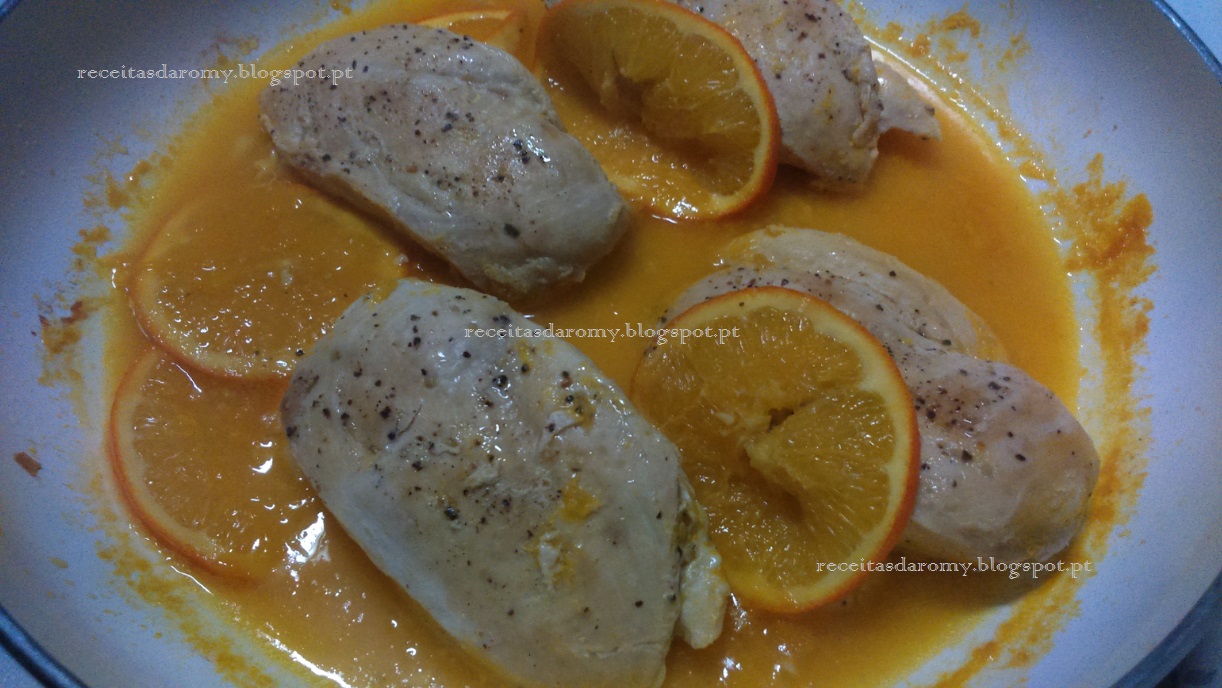- Acrescente o sumo e as laranjas em rodelas, deixando ferver por 10 minutos, em lume brando.
