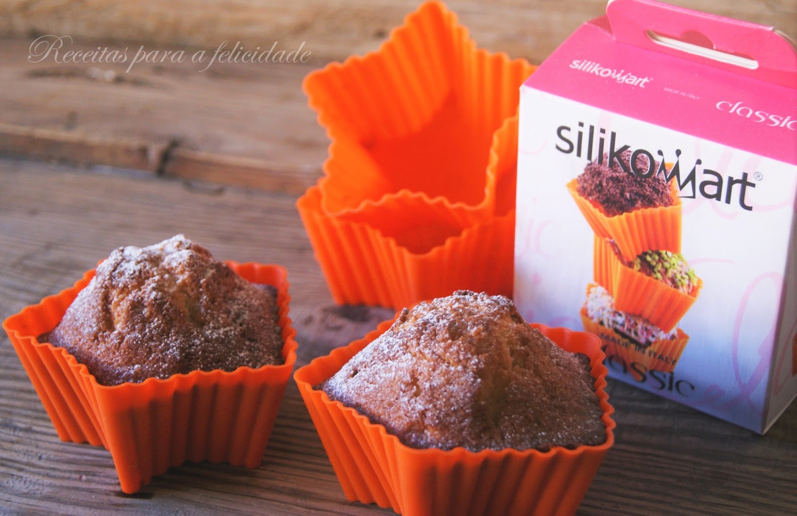 Unte as forminhas com margarina e farinha ou com spray desmoldante (no caso de como eu, usarem formas de silicone), Encha depois as forminhas, até estas atingirem ¾ da capacidade e leve ao forno pré-aquecido a 180ºC, por cerca de 15 minutos, dependendo do tamanho das formas. Eu deixei mais um pouco pois gosto deles tostadinhos.