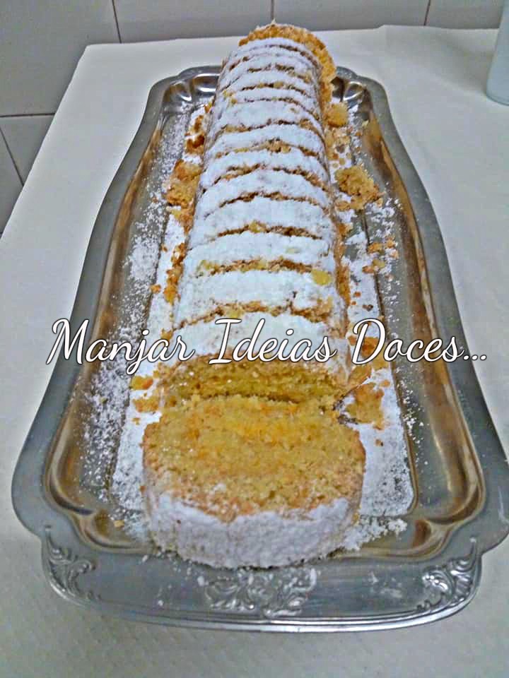 Desenforme para um pano molhado e polvilhado com açúcar, enrole.