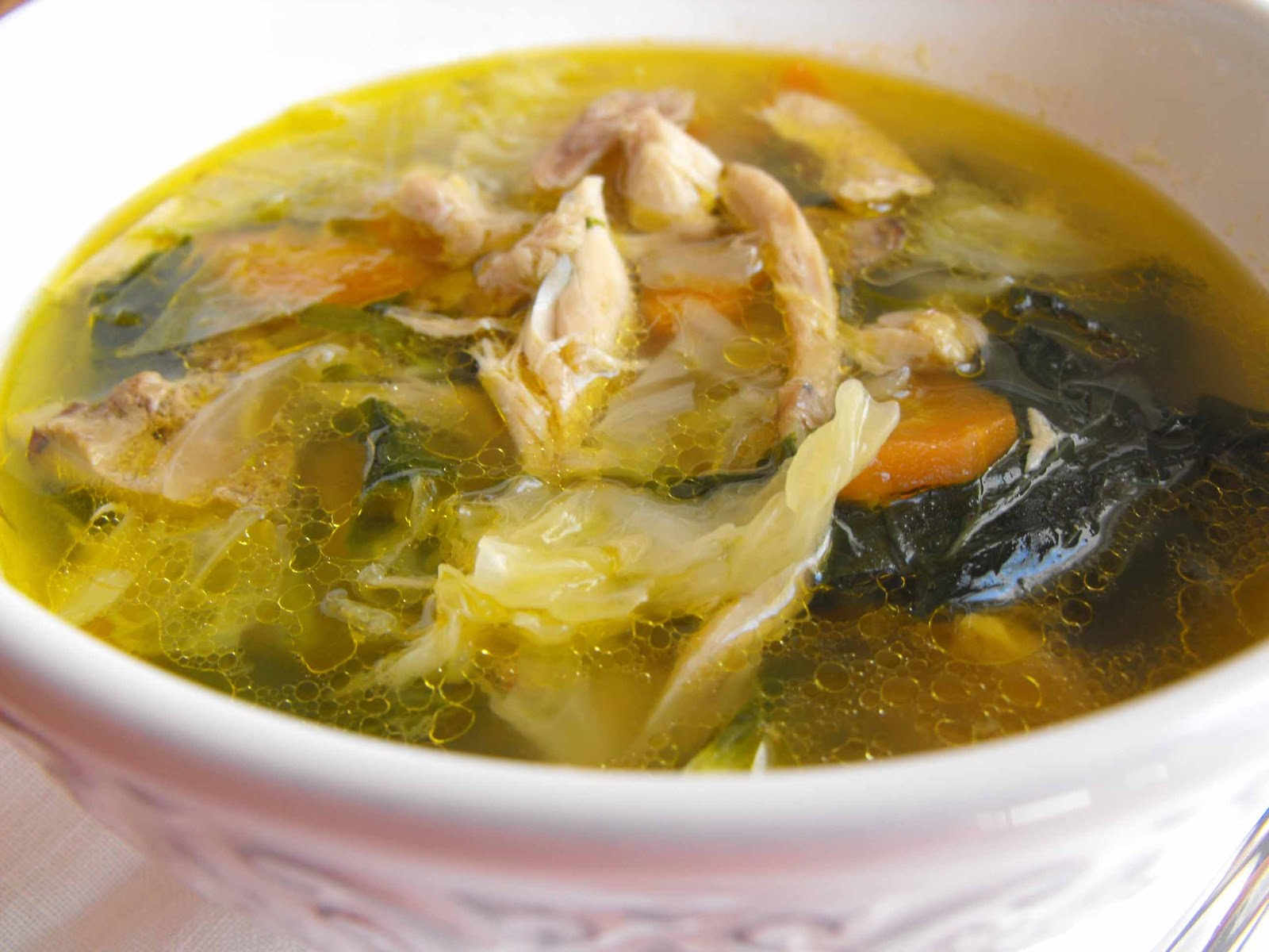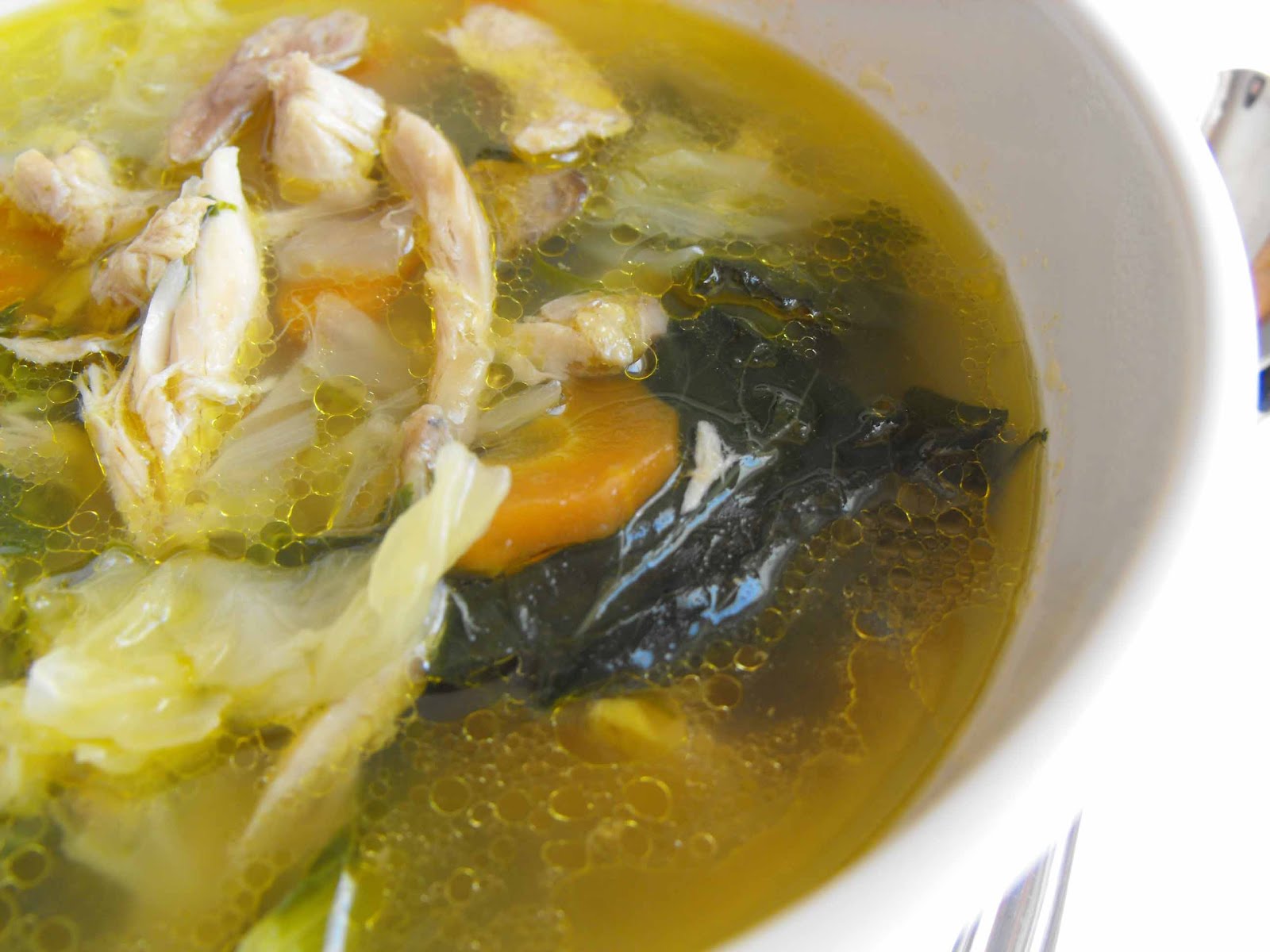 As pessoas que me conhecem bem sabem que das melhores coisas que me podem sempre oferecer são produtos alimentares. Gosto de receber sem estar à espera, gosto de receber porque as pessoas se lembraram de mim, gosto de receber porque gosto do desafio de ter que usar um produto para o qual não tinha planos… enfim, coisas de quem gosta mesmo muito de passar tempo de volta dos tachos! Um destes dias a minha sogra deu-me um frango do campo. Fiquei toda contente até perceber que o bendito do frango vinha inteiro! Sim, sou menina da cidade, com muita pena minha que gostava de viver no campo, e para mim o frango vem do talho, partido e arranjado. Ou seja… a guerra ia começar! Lá me enchi de coragem, peguei numa faca afiada, numa tábua para carnes e lá comecei a partir o frango pelas partes mais óbvias e onde sei que existem as articulações. O pior foi mesmo a parte central do animal… essa deu luta, confesso! Deve haver vídeos no Youtube onde explicam como se parte um frango e tenho que ir averiguar, uma vez que a minha sogra já me tem prometidos mais animais do género. Seja como for, depois do frango partido em pedaços, dividi em 3 partes mais ou menos idênticas, congelei duas delas e com a outra fui fazer sopa. Podia ter optado pela canja obviamente (que também já fiz entretanto!) mas lembrei-me de fazer uma daquelas sopas que adoro. Que nem é preciso triturar e que com tudo lá dentro servem perfeitamente uma refeição completa! As variações são imensas e basicamente depende dos legumes que tiverem no frigorífico. Usando frango do campo não precisam de juntar mais gordura nenhuma. Deixo-vos a sugestão: