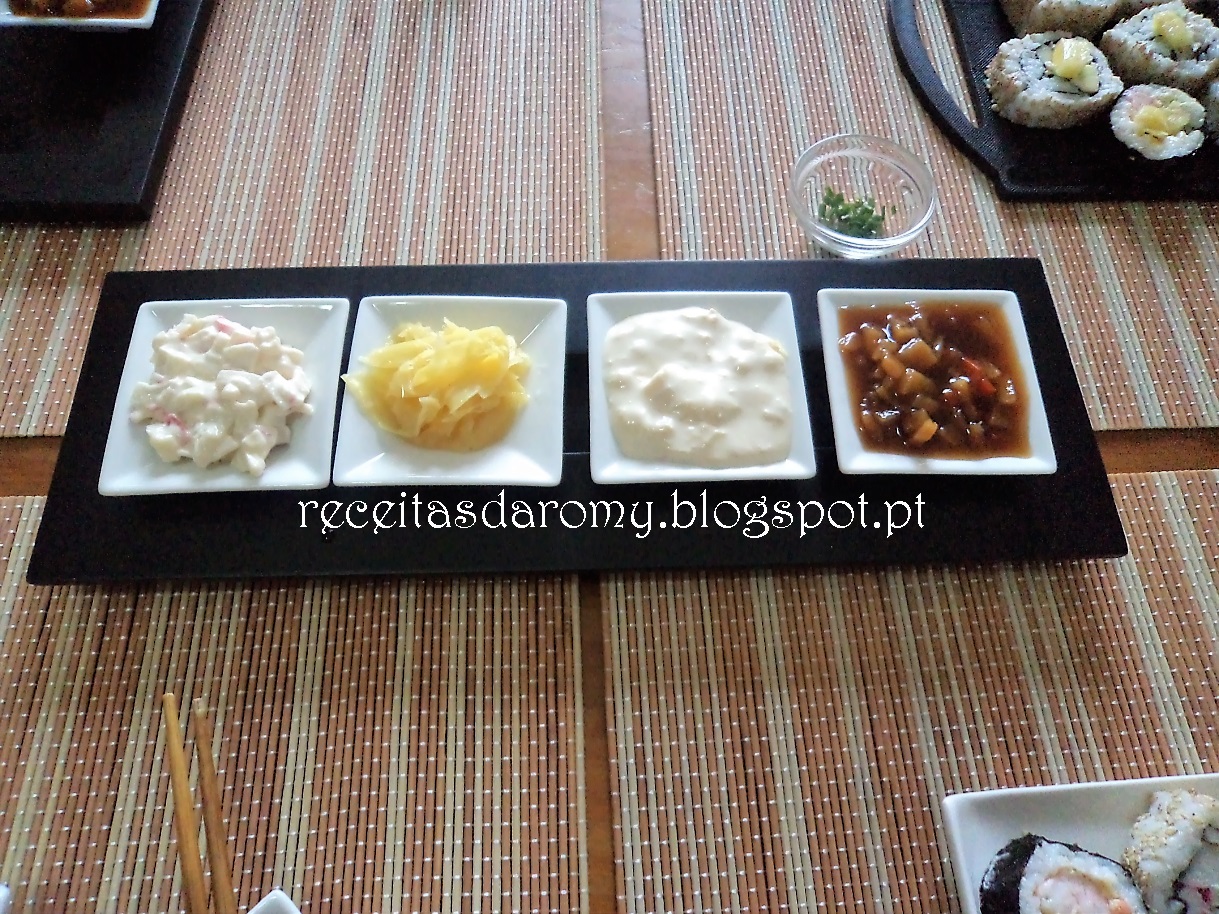 Molho de Gari: 1/2 chávena de maionese caseira com 2 c. sopa de Gari bem picado e alguns pingos de molho de soja. Reservei.