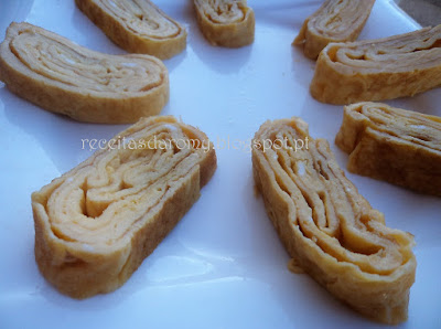 Parta a omeleta com rodelas de 2 ou 3 cm.
