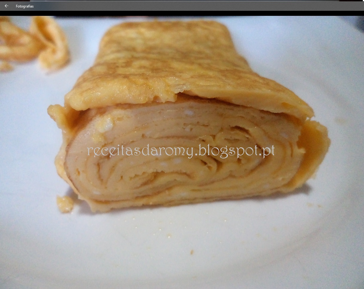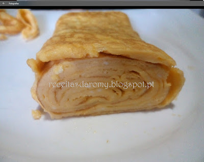 Com a ultima parte da massa, proceda da mesma forma, enrolando-a na omeleta que ficou na frigideira.